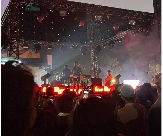 “Mungkin tata letak panggungnya bisa diatur lagi, terlalu mundur. Terus banyak yang duduk juga—masa nonton konser duduk? Aneh banget,” ujarnya sambil tertawa.