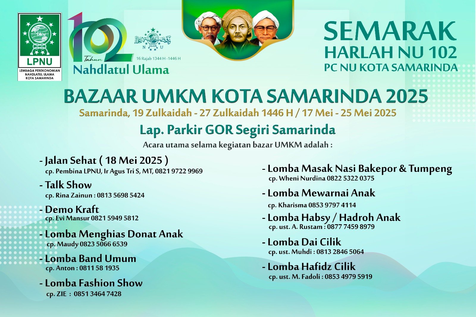 “Dalam rangka memperingati Harlah NU ke-102, kami menyelenggarakan Semarak Harlah NU dengan mengadakan Bazaar UMKM Kota Samarinda 2025 yang penuh dengan kegiatan menarik, termasuk Jalan Sehat dan berbagai lomba,” ujar Ketua LP NU Kota Samarinda, Najamuddin SH, pada Jumat (16/5/2025).